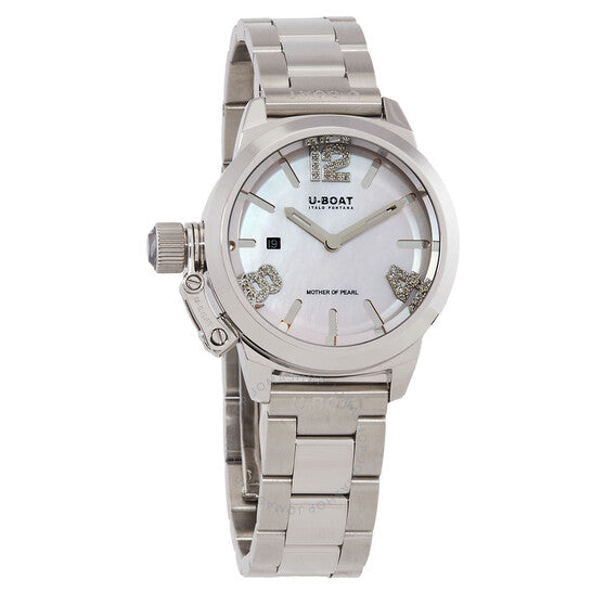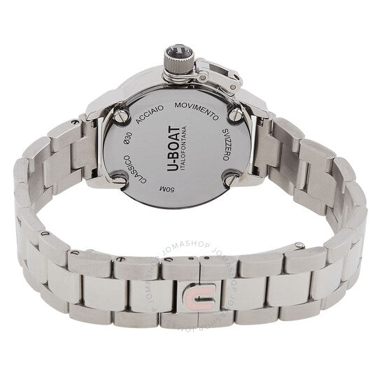 علبة من الفولاذ المقاوم للصدأ مع سوار من الفولاذ المقاوم للصدأ. إطار ثابت من الفولاذ المقاوم للصدأ. ميناء وردي مع عقارب فضية اللون وعلامات ساعات. تظهر الأرقام العربية عند الساعة 4 و8 و12. نوع الميناء: تناظري. عرض التاريخ عند الساعة 9. حركة كوارتز روندا عيار 774. زجاج من الياقوت المقاوم للخدش. غطاء خلفي شفاف. شكل دائري. حجم العلبة: 30 مم. مشبك قابل للطي مع مفتاح أمان. مقاومة للماء حتى عمق 50 مترًا / 165 قدمًا. الوظائف: التاريخ، الساعة، الدقائق. سلسلة كلاسيكو. تصميم كاجوال. علامة الساعة: صناعة سويسرية. ساعة يو بوت كلاسيكو كوارتز نسائية بمينا وردي، 8898.