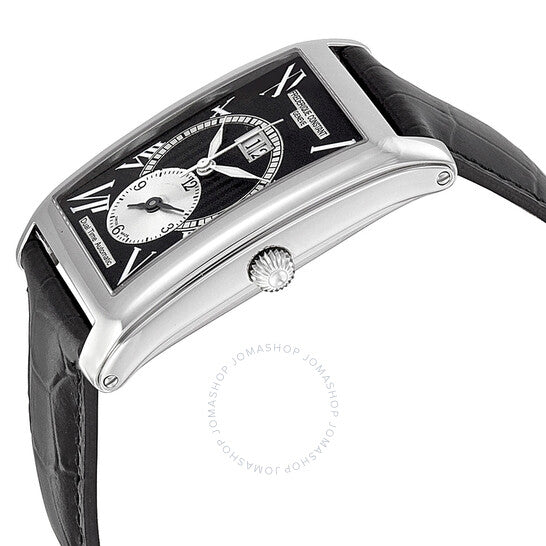 علبة فضية اللون من الفولاذ المقاوم للصدأ مع سوار جلدي أسود. إطار ثابت فضي اللون من الفولاذ المقاوم للصدأ. ميناء أسود بعقارب فضية اللون على شكل ورقة شجر وعلامات ساعات رومانية. علامات دقائق حول الحلقة الداخلية. نوع الميناء: تناظري. عقارب وعلامات مضيئة. عرض التاريخ عند موضع الساعة ١٢. ميناء فرعي واحد يعرض: المنطقة الزمنية الثانية عند موضع الساعة ٦. حركة أوتوماتيكية من عيار فريدريك كونستانت FC-325 مع احتياطي طاقة لمدة ٤٢ ساعة. كريستال ياقوت مقاوم للخدش. تاج قابل للسحب/الدفع. غطاء خلفي شفاف هيكلي. هيكل مستطيل الشكل، مقاس الهيكل: ٤٧ مم × ٣٠.٧ مم، سمك الهيكل: ١٠.٢ مم. مشبك تانغ. مقاومة للماء حتى عمق ٣٠ مترًا / ١٠٠ قدم. الوظائف: المنطقة الزمنية الثانية، التاريخ، الساعة، الدقيقة، الثانية. سلسلة كلاسيكس كاري. تصميم ساعة كاجوال. علامة الساعة: صناعة سويسرية. إصدارات متنوعة: FC 325BS4C26، FC325BS4C26، FC325BS4C26. ساعة فريدريك كونستانت كلاسيكس كاريه، مينا سوداء، حزام جلدي أسود، FC-325BS4C26.