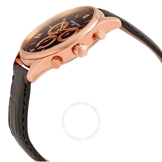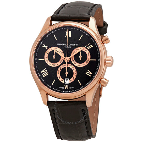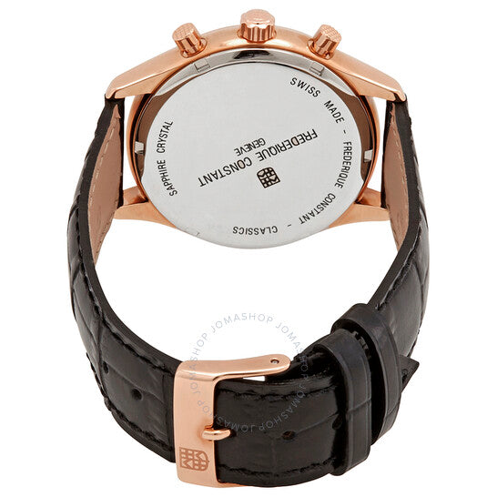 علبة من الفولاذ المقاوم للصدأ مطلية بالذهب الوردي مع سوار جلدي أسود. إطار ثابت. ميناء أسود بعقارب ذهبية وردية وأرقام رومانية للساعات. نوع الميناء: تناظري. عرض التاريخ عند موضع الساعة السادسة. كرونوغراف - ثلاثة أقراص فرعية تعرض: 60 ثانية، 30 دقيقة، و12 ساعة. حركة كوارتز من عيار فريدريك كونستانت FC-292. زجاج ياقوت محدب مقاوم للخدش. غطاء خلفي صلب. شكل دائري. حجم العلبة: 40 مم. مقاومة للماء حتى عمق 50 مترًا / 165 قدمًا. الوظائف: كرونوغراف، تاريخ، ساعة، دقيقة، ثانية. طراز ساعة رسمية. علامة الساعة: صناعة سويسرية. ساعة فريدريك كونستانت كلاسيكس كرونوغراف للرجال بمينا سوداء FC-292MBG5B4.