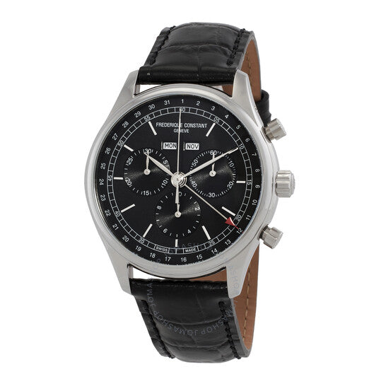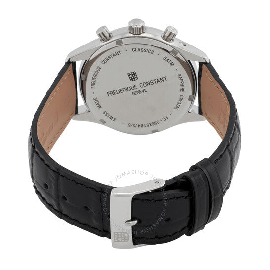 علبة من الفولاذ المقاوم للصدأ فضية اللون مع سوار جلدي أسود. إطار ثابت من الفولاذ المقاوم للصدأ فضي اللون. ميناء رمادي غير لامع بعقارب فضية اللون وعلامات ساعات. علامات دقائق حول الحافة الخارجية. نوع الميناء: تناظري. مقياس التاريخ حول الحافة الخارجية. كرونوغراف - ثلاثة أقراص فرعية تعرض: ٦٠ ثانية، ٣٠ دقيقة، و١/١٠ من الثانية. حركة كوارتز FC-296 (قاعدة روندا 5040.F). تاج قابل للسحب/الدفع. غطاء خلفي صلب. شكل دائري، حجم العلبة: ٤٠ مم، سمكها: ١٠.٥٦ مم. عرض السوار: ٢٠ مم. مشبك تانغ. مقاومة للماء حتى عمق ٥٠ مترًا / ١٦٥ قدمًا. الوظائف: تقويم كامل، كرونوغراف، شهر، تاريخ، يوم، ساعة، دقيقة، ثانية صغيرة. سلسلة كلاسيكس. طراز ساعة رياضية. علامة الساعة: صناعة سويسرية. ساعة فريدريك كونستانت كلاسيكس كرونوغراف كوارتز رمادية اللون للرجال FC-296DG5B6.