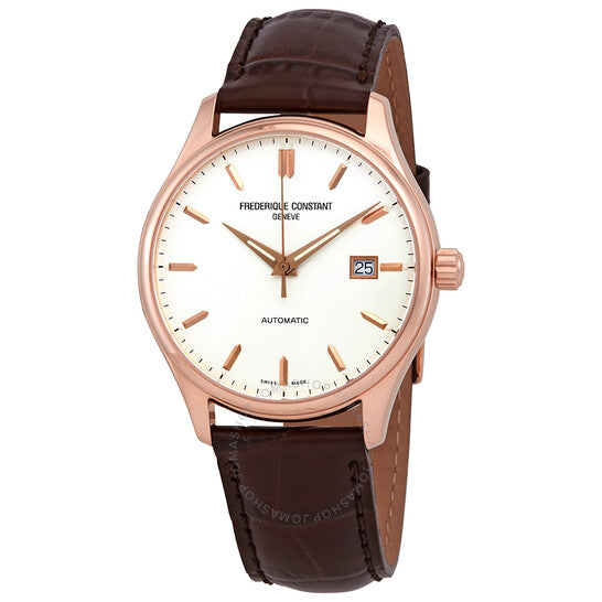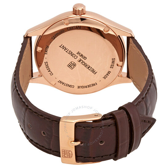 علبة من الفولاذ المقاوم للصدأ مطلية بالذهب الوردي مع حزام من الجلد البني. إطار ثابت مطلي بالذهب الوردي. ميناء أبيض مع عقارب مضيئة على شكل دوفين بلون الذهب الوردي وعلامات ساعات مؤشر. علامات دقائق حول الحافة الخارجية. نوع الميناء: تناظري. عقارب مضيئة. عرض التاريخ عند موضع الساعة 3. حركة أوتوماتيكية من عيار فريدريك كونستانت FC-303، مبنية على سيليتا SW200-1، تحتوي على 26 جوهرة، تنبض بمعدل 28800 ذبذبة في الساعة، ولديها احتياطي طاقة لمدة 38 ساعة تقريبًا. كريستال ياقوت مقاوم للخدش. تاج سحب/دفع. غطاء خلفي صلب. شكل دائري. حجم العلبة: 40 مم. سمك العلبة: 10 مم. عرض السوار: 20 مم. طول السوار: 8 بوصات. مشبك تانغ. مقاومة للماء حتى عمق 50 مترًا / 165 قدمًا. الوظائف: التاريخ، الساعة، الدقيقة، الثانية. سلسلة كلاسيك إندكس. طراز ساعة رسمية. ملصق الساعة: صناعة سويسرية. إصدارات المنتج: FC 303V5B4، FC.303V5B4، FC303V5B4. ساعة فريدريك كونستانت كلاسيكس إندكس الأوتوماتيكية للرجال FC-303V5B4.