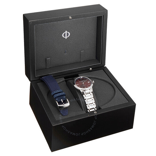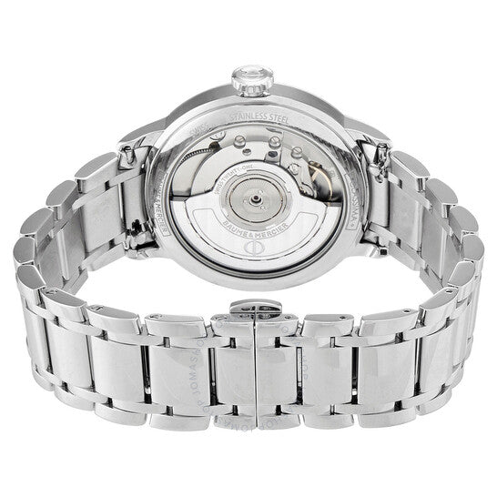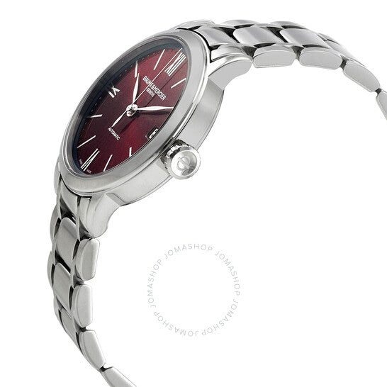 علبة وسوار من الفولاذ المقاوم للصدأ فضي اللون. إطار ثابت من الفولاذ المقاوم للصدأ فضي اللون. ميناء أحمر بعقارب فضية اللون وعلامات ساعات رومانية ومؤشرية. علامات دقائق حول الحافة الخارجية. نوع الميناء: تناظري. عرض التاريخ عند موضع الساعة 3. حركة أوتوماتيكية ETA Caliber 2892-A2، مبنية على ETA 2890، تحتوي على 21 جوهرة، تنبض بمعدل 28800 ذبذبة في الساعة، ولديها احتياطي طاقة لمدة 42 ساعة تقريبًا. زجاج ياقوت مقاوم للخدش. غطاء خلفي شفاف. شكل العلبة دائري، مقاسها 34 مم. مشبك قابل للطي بزر ضغط. مقاومة للماء حتى عمق 50 مترًا / 165 قدمًا. الوظائف: التاريخ، الساعة، الدقيقة، الثانية. سلسلة كلاسيما. تصميم كاجوال. علامة الساعة: سويسرية. ساعة بوم إيه ميرسييه كلاسيما أوتوماتيكية نسائية بمينا أحمر M0A10691.