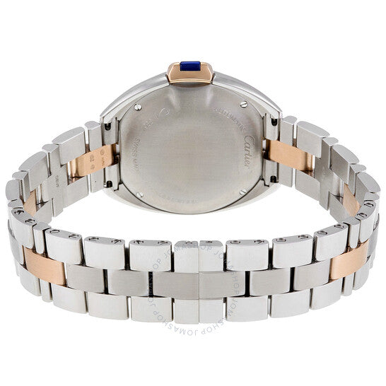علبة من الفولاذ المقاوم للصدأ مع سوار من الفولاذ المقاوم للصدأ بوصلات من الذهب الوردي عيار 18 قيراطًا. إطار ثابت من الذهب الوردي عيار 18 قيراطًا. ميناء فضي بتأثير أشعة الشمس بتقنية فلينك، مع عقارب على شكل سيف من الفولاذ المزرق، وعلامات ساعات بأرقام رومانية. علامات دقائق حول الحافة الخارجية. نوع الميناء: تناظري. عرض التاريخ عند موضع الساعة السادسة. حركة أوتوماتيكية من كارتييه، عيار 1847 إم سي، تحتوي على 23 جوهرة، تنبض بمعدل 28800 ذبذبة في الساعة، ولديها احتياطي طاقة لمدة 42 ساعة تقريبًا. كريستال ياقوت مقاوم للخدش. تاج من الذهب الوردي عيار 18 قيراطًا بتصميم كابوشون (مدمج). غطاء خلفي صلب. شكل دائري. حجم العلبة: 31 مم. سمكها: 11.04 مم. عرض السوار: 15 مم، طوله: 7 بوصات. مشبك قابل للطي بزر ضغط مزدوج. مقاومة للماء حتى عمق 30 مترًا / 100 قدم. الوظائف: التاريخ، الساعة، الدقائق، الثواني. معلومات إضافية: تاج مرصع بذهب وردي عيار 18 قيراطًا، وحجر كابوشون من الإسبينيل الصناعي الأزرق. سلسلة كلي دو كارتييه. تصميم ساعة فاخر. علامة الساعة: صناعة سويسرية. ساعة كارتييه كلي دو كارتييه أوتوماتيكية نسائية بمينا فضي W2CL0004.