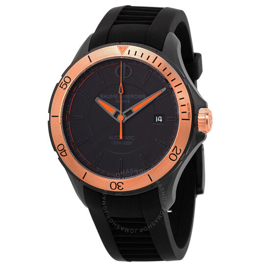 علبة من الفولاذ المقاوم للصدأ مطلية باللون الأسود مع سوار مطاطي أسود. إطار دوار أحادي الاتجاه من الذهب الوردي عيار 18 قيراطًا. ميناء أسود بعقارب سوداء مضيئة وعلامات ساعات. علامات دقائق حول الحافة الخارجية. نوع الميناء: تناظري. عقارب مضيئة. عرض التاريخ عند موضع الساعة 3. آلية حركة أوتوماتيكية. زجاج ياقوت مقاوم للخدش. تاج لولبي. غطاء خلفي صلب. شكل دائري. حجم العلبة: 42 مم. سمكها: 11 مم. عرض السوار: 20 مم. مشبك تانغ. مقاومة للماء حتى عمق 100 متر / 330 قدمًا. الوظائف: التاريخ، الساعة، الدقائق، الثواني. تصميم كاجوال. علامة الساعة: صناعة سويسرية. ساعة بوم إيه ميرسييه كليفتون أوتوماتيكية للرجال بمينا أسود، طراز M0A10425.