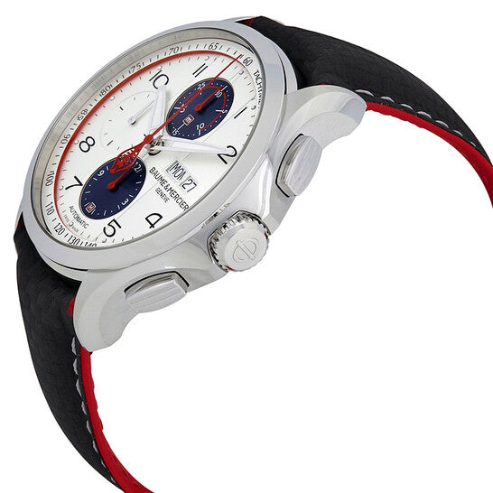 علبة من الفولاذ المقاوم للصدأ فضية اللون مع سوار أسود من ألياف الكربون. إطار ثابت من الفولاذ المقاوم للصدأ فضي اللون. ميناء فضي مع عقارب مضيئة فضية اللون وعلامات ساعات عربية. علامات دقائق. علامات تاكيميتر حول الحافة الخارجية. نوع الميناء: تناظري. عقارب وعلامات مضيئة. عرض يوم الأسبوع والتاريخ عند موضع الساعة 3. كرونوغراف - ثلاثة أقراص فرعية تعرض: 60 ثانية، 30 دقيقة، و12 ساعة. حركة أوتوماتيكية من عيار فالجو 7750 مع احتياطي طاقة لمدة 48 ساعة. زجاج ياقوت مقاوم للخدش. غطاء خلفي هيكلي. حجم العلبة: 44 مم. سمكها: 15 مم. شكلها دائري. مشبك قابل للطي. مقاومة للماء حتى عمق 50 مترًا / 165 قدمًا. الوظائف: كرونوغراف، تاكيميتر، تاريخ، ساعة، دقيقة، ثانية. طراز ساعة فاخرة. علامة الساعة: صناعة سويسرية. ساعة بوم ايه ميرسييه كليفتون أوتوماتيكية كرونوغراف للرجال MOA10342.