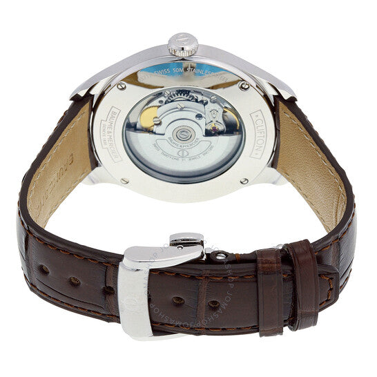 علبة من الفولاذ المقاوم للصدأ مع سوار بني من جلد التمساح. إطار ثابت من الفولاذ المقاوم للصدأ. ميناء فضي مصقول بلمسة الشمس مع عقارب بلون الذهب الوردي وأرقام عربية متناوبة وعلامات ساعات. علامات دقائق حول الحافة الخارجية. نوع الميناء: تناظري. عرض التاريخ عند موضع الساعة 3. ميناء فرعي للثواني عند موضع الساعة 6. حركة أوتوماتيكية من عيار Sellita SW260-1 مع احتياطي طاقة لمدة 38 ساعة. زجاج ياقوت مقاوم للخدش. تاج قابل للسحب/الدفع. ظهر هيكلي. شكل دائري. حجم العلبة: 41 مم. سمكها: 11.54 مم. عرض السوار: 22.9 مم. طول السوار: 9 بوصات. مشبك قابل للطي. مقاومة للماء حتى عمق 50 مترًا / 165 قدمًا. الوظائف: التاريخ، الساعة، الدقائق، الثواني. طراز ساعة رسمية. ملصق الساعة: صناعة سويسرية. اختلافات المنتج: MOA10054، M0A10054، 10054. ساعة بوم إيه ميرسييه كليفتون الأوتوماتيكية للرجال A10054.