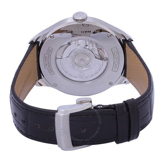 علبة من الفولاذ المقاوم للصدأ فضية اللون مع سوار جلدي أسود. إطار ثابت من الفولاذ المقاوم للصدأ فضي اللون. ميناء أسود بعقارب فضية اللون وعلامات ساعات بأرقام عربية. علامات دقائق حول الحافة الخارجية. نوع الميناء: تناظري. عرض التاريخ عند موضع الساعة 3. ميناء فرعي واحد يعرض: منطقة زمنية ثانية. حركة أوتوماتيكية ETA Caliber 2893-2، مبنية على ETA 2892-A2، تحتوي على 21 جوهرة، تنبض بمعدل 28800 ذبذبة في الساعة، ولديها احتياطي طاقة لمدة 42 ساعة تقريبًا. زجاج ياقوت مقاوم للخدش. تاج قابل للسحب/الدفع. غطاء خلفي شفاف. شكل دائري، حجم العلبة: 43 مم، سمك العلبة: 11.4 مم. عرض السوار: 21 مم، طول السوار: 8 بوصات. مشبك قابل للطي بزر ضغط. مقاومة للماء حتى عمق 50 مترًا / 165 قدمًا. الوظائف: التاريخ، توقيت غرينتش، منطقة زمنية ثانية، ساعة، دقيقة، ثانية. معلومات إضافية: الساعات، الدقائق، الثواني، التاريخ، التوقيت المزدوج. سلسلة كليفتون. طراز ساعة فاخر. العلامة التجارية: سويسرية. ساعة بوم إيه ميرسييه كليفتون جي إم تي أوتوماتيكية بمينا أسود للرجال، طراز M0A10302.