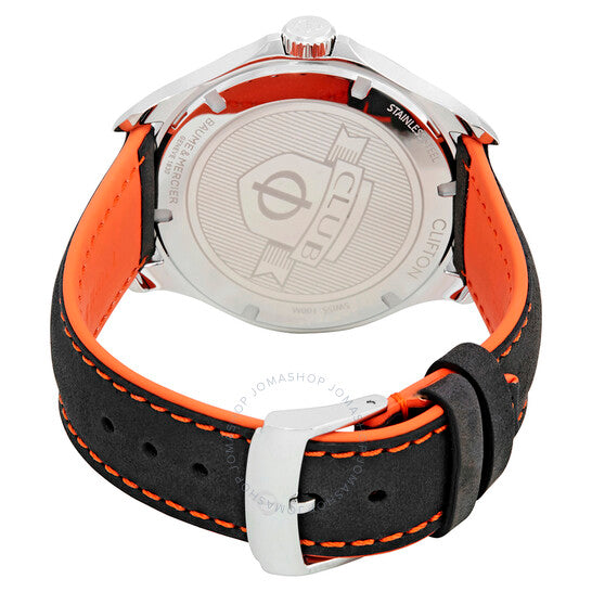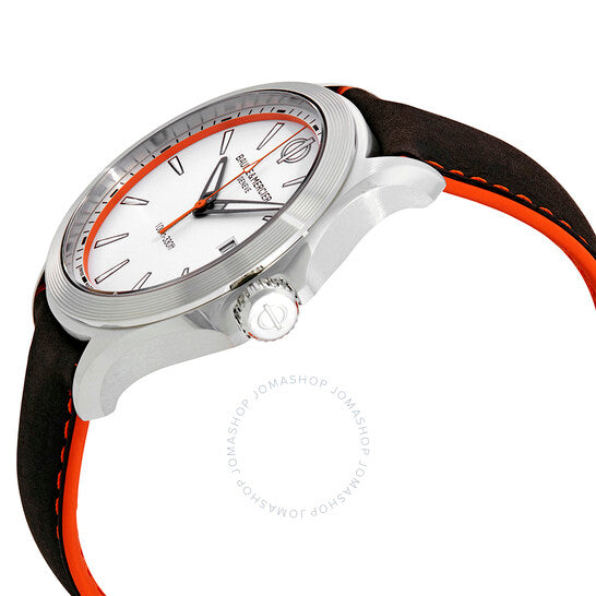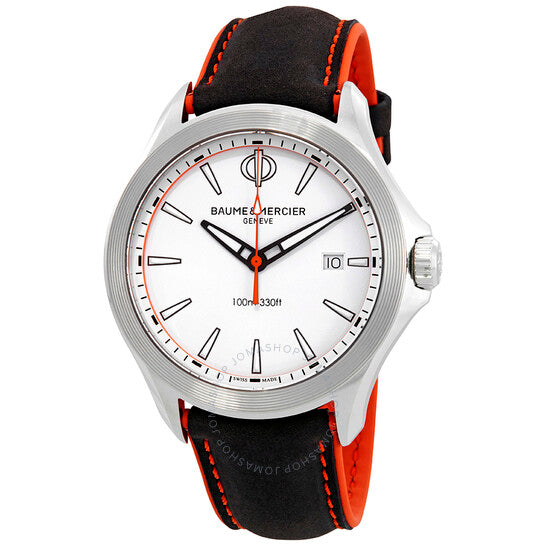 علبة من الفولاذ المقاوم للصدأ مع سوار من الجلد الأسود (برتقالي اللون). إطار ثابت من الفولاذ المقاوم للصدأ. ميناء أبيض مع عقارب ومؤشرات ساعات مضيئة مطلية بالروديوم الأسود. مؤشرات دقائق حول الحافة الخارجية. نوع الميناء: تناظري. عقارب ومؤشرات مضيئة. عرض التاريخ عند موضع الساعة 3. حركة كوارتز روندا عيار 6003D. زجاج ياقوت مقاوم للخدش. تاج لولبي. غطاء خلفي صلب. شكل دائري. حجم العلبة: 42 مم. سمكها: 9.55 مم. عرض السوار: 21 مم. مشبك تانغ. مقاومة للماء حتى عمق 100 متر / 330 قدمًا. الوظائف: التاريخ، الساعة، الدقائق، الثواني. تصميم كاجوال. علامة الساعة: صناعة سويسرية. ساعة بوم إيه ميرسييه كليفتون للرجال بمينا أبيض، 10410.