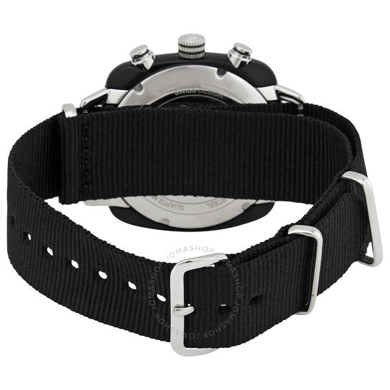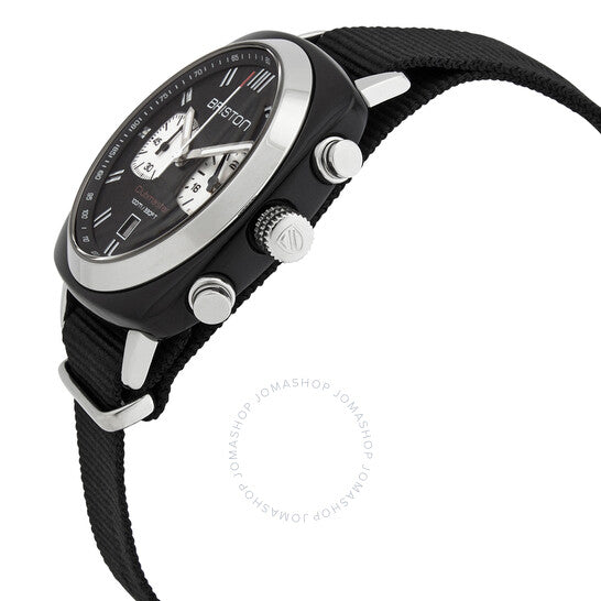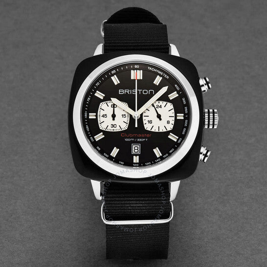 علبة أسيتات سوداء مع سوار نايلون أسود. إطار ثابت من الفولاذ المقاوم للصدأ فضي اللون. ميناء أسود بعقارب ومؤشرات ساعات فضية مضيئة. مؤشرات سرعة الدوران حول الحافة الخارجية. نوع الميناء: تناظري. عقارب ومؤشرات مضيئة. عرض التاريخ فوق موضع الساعة السادسة. كرونوغراف - ميناءان فرعيان يعرضان: 60 ثانية و24 ساعة. حركة كوارتز. زجاج ياقوتي مقاوم للخدش. تاج قابل للسحب/الدفع. غطاء خلفي صلب. شكل العلبة مربع، مقاسها: 42 مم، سمكها: 11.9 مم. عرض السوار: 20 مم، طوله: 9 بوصات. مشبك تانغ. مقاومة للماء حتى عمق 100 متر / 330 قدم. الوظائف: كرونوغراف، مقياس سرعة الدوران، التاريخ، الساعة، الدقيقة، الثانية. سلسلة كلوب ماستر. تصميم ساعة فاخرة. ساعة بريستون كلوب ماستر كرونوغراف كوارتز بمينا سوداء للرجال 17142.SA.BS.1.NB.