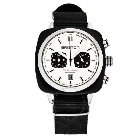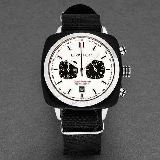 علبة أسيتات سوداء مع سوار نايلون أسود. إطار ثابت من الفولاذ المقاوم للصدأ فضي اللون. ميناء أبيض بعقارب فضية اللون وعلامات ساعات. مؤشرات سرعة الدوران حول الحافة الخارجية. نوع الميناء: تناظري. عقارب مضيئة. عرض التاريخ عند موضع الساعة السادسة. كرونوغراف - ميناءان فرعيان يعرضان: 60 ثانية و24 ساعة. حركة كوارتز. زجاج ياقوتي مقاوم للخدش. تاج قابل للسحب/الدفع. غطاء خلفي صلب. شكل العلبة مربع، مقاسها: 42 مم، سمكها: 11.9 مم. عرض السوار: 20 مم، طوله: 9 بوصات. مشبك تانغ. مقاومة للماء حتى عمق 100 متر / 330 قدم. الوظائف: كرونوغراف، سرعة دوران، تاريخ، ساعة، دقيقة، ثانية. سلسلة كلوب ماستر. تصميم ساعة فاخرة. ساعة بريستون كلوب ماستر كرونوغراف كوارتز بمينا بيضاء للرجال، 17142.SA.BS.2.NB.