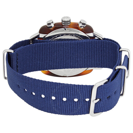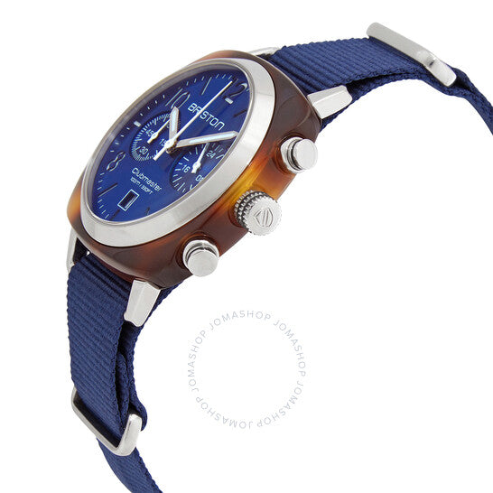 علبة أسيتات بلون صدفة السلحفاة مع حزام نايلون أزرق (ناتو). إطار ثابت من الفولاذ المقاوم للصدأ. ميناء أزرق بنقش أشعة الشمس مع عقارب سوداء مضيئة وأرقام عربية متناوبة وعلامات ساعات. علامات دقائق حول الحافة الخارجية. نوع الميناء: تناظري. عقارب مضيئة. عرض التاريخ عند موضع الساعة السادسة. كرونوغراف - ميناءان فرعيان يعرضان: 60 ثانية و24 ساعة. حركة كوارتز من عيار ميوتا OS21. زجاج معدني مقاوم للخدش. تاج قابل للسحب/الدفع. ظهر صلب. شكل وسادة. حجم الهيكل: 40 مم. سمك الهيكل: 11.7 مم. عرض السوار: 20 مم. مشبك تانغ. مقاومة للماء حتى عمق 100 متر / 330 قدمًا. الوظائف: كرونوغراف، تاريخ، توقيت غرينتش، منطقة زمنية ثانية، ساعة، دقيقة، ثانية. سلسلة كلوب ماستر الكلاسيكية. تصميم ساعة كاجوال. ملصق الساعة: Japan Movt. ساعة بريستون كلوب ماستر كلاسيك كرونوغراف كوارتز للرجال 15140.SA.T.9.NNB.