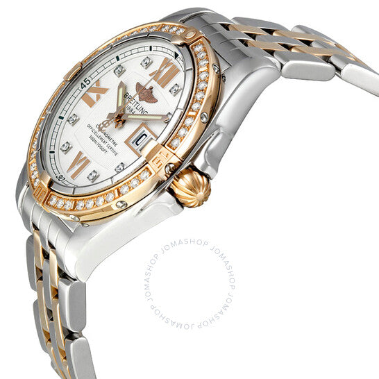 علبة من الفولاذ المقاوم للصدأ والذهب الوردي عيار 18 قيراطًا مع سوار من الفولاذ المقاوم للصدأ والذهب الوردي عيار 18 قيراطًا. إطار دوار أحادي الاتجاه مرصع بالألماس. ميناء أبيض بعقارب بلون الذهب الوردي ومرصع بالألماس بأرقام رومانية عند الساعة 6 و9 و12، بالإضافة إلى علامات الساعات. علامات الدقائق حول الحافة الخارجية. نوع الميناء: تناظري. عقارب وعلامات مضيئة. يظهر عرض التاريخ عند الساعة 3. حركة أوتوماتيكية. محرك بريتلينغ كاليبر 49 مع احتياطي طاقة يصل إلى 42 ساعة تقريبًا. زجاج من الياقوت المقاوم للخدش. تاج لولبي. غطاء خلفي صلب. قطر العلبة: 41 مم. سمكها: 14 مم. شكلها دائري. عرض السوار: 16 مم. قابلة للطي بمشبك أمان. مقاومة للماء حتى عمق 100 متر / 330 قدمًا. الوظائف: التاريخ، الساعة، الدقيقة، الثانية. تصميم ساعة فاخرة. ساعة بريتلينغ كوكبيت دايموند للرجال من الذهب الوردي C4935053-A672TT.