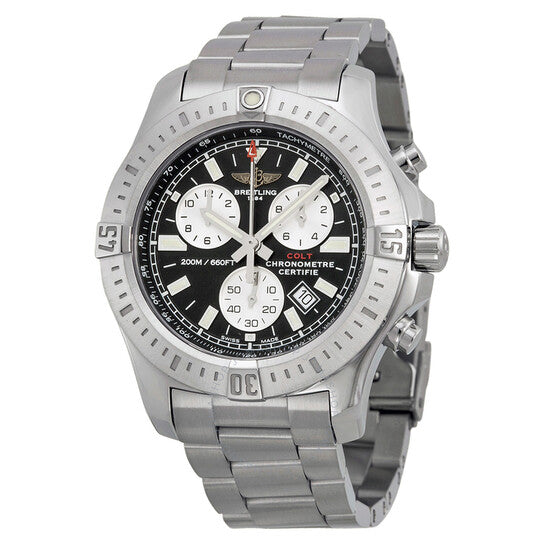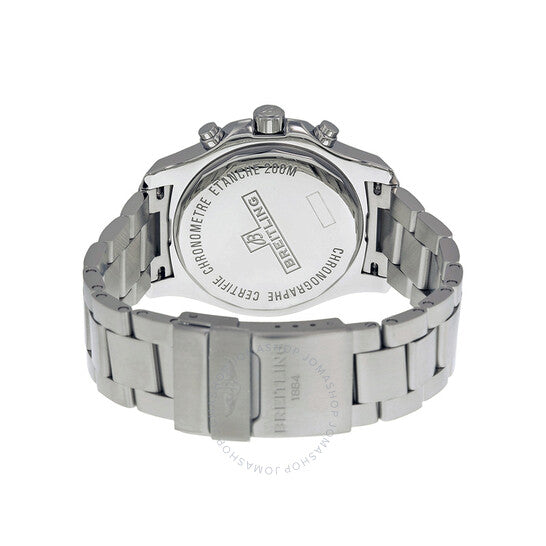علبة من الفولاذ المقاوم للصدأ مع سوار من الفولاذ المقاوم للصدأ. إطار دوار أحادي الاتجاه من الفولاذ المقاوم للصدأ. ميناء أسود مع عقارب وعلامات ساعات فضية مضيئة. علامات دقائق. مقياس سرعة حول الحافة الخارجية. نوع الميناء: تناظري. عقارب وعلامات مضيئة. عرض التاريخ بين موضعي الساعة 4 و5. كرونوغراف - ثلاثة موانئ فرعية فضية تعرض: 60 ثانية، 12 ساعة، و1/10 من الثانية. حركة كوارتز بريتلينغ كاليبر 73. كريستال ياقوت مقاوم للخدش. تاج مُغلق ببرغي - حشوتان. غطاء خلفي صلب. شكل دائري. حجم الهيكل: 44 مم. سمك الهيكل: 11.9 مم. عرض السوار: 22 مم. طول السوار: 8.5 بوصة. مشبك قابل للطي مع مفتاح أمان. مقاومة للماء حتى عمق 200 متر / 660 قدمًا. الوظائف: كرونوغراف، تاريخ، ساعة، دقيقة، ثانية، كرونومتر، مقياس سرعة. سلسلة كولت كرونوغراف. تصميم فاخر. علامة الساعة: صناعة سويسرية. إصدارات متنوعة: A7338811 BD43، A7338811.BD43، A7338811BD43. ساعة بريتلينغ كولت كرونوغراف للرجال بمينا أسود A7338811-BD43SS.