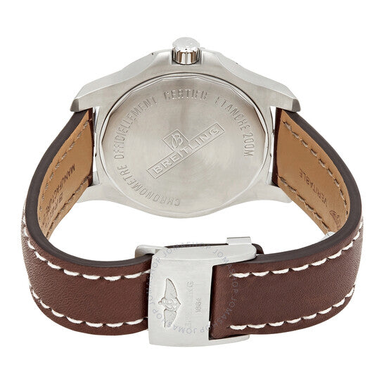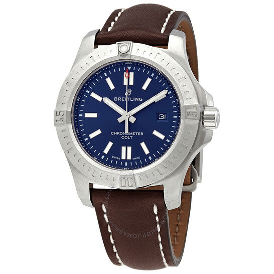 علبة فضية اللون من الفولاذ المقاوم للصدأ مع سوار بني من جلد العجل. إطار دوار أحادي الاتجاه من الفولاذ المقاوم للصدأ فضي اللون. ميناء أزرق بحري مع عقارب وعلامات ساعات فضية مضيئة. علامات الدقائق. 1/100 ثانية حول الحافة الخارجية. نوع الميناء: تناظري. عقارب وعلامات مضيئة. عرض التاريخ عند موضع الساعة 3. حركة بريتلينغ كاليبر 17 أوتوماتيكية، مبنية على ETA 2824-2، تحتوي على 25 جوهرة، تنبض بمعدل 28800 ذبذبة في الساعة، ولديها احتياطي طاقة لمدة 42 ساعة تقريبًا. زجاج ياقوت مقاوم للخدش. تاج مغلق ببرغي. غطاء خلفي صلب. شكل العلبة دائري، مقاس العلبة: 44 مم، سمكها: 11.25 مم. عرض السوار: 22/20 مم. قابلة للطي مع مشبك بزر ضغط. مقاومة للماء حتى عمق 200 متر / 660 قدمًا. الوظائف: التاريخ، الساعة، الدقائق، الثواني. تصميم ساعة فاخرة. علامة الساعة: صناعة سويسرية. ساعة بريتلينغ كولت مارينر أوتوماتيكية للرجال بمينا أزرق A17388101C1X4.