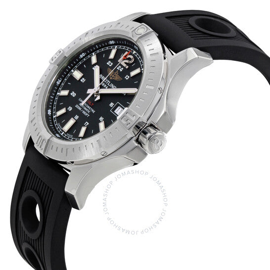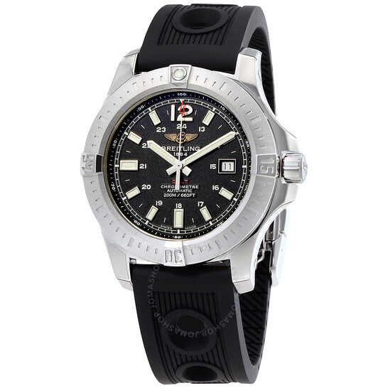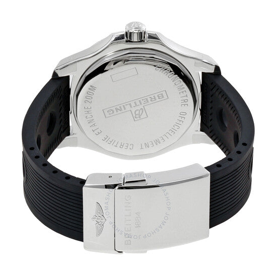 علبة من الفولاذ المقاوم للصدأ مع سوار مطاطي أسود (أوشن رايسر). إطار دوار أحادي الاتجاه من الفولاذ المقاوم للصدأ. ميناء أسود بركاني مع عقارب ومؤشرات ساعات فضية مضيئة. يظهر رقم عربي عند موضع الساعة ١٢. مؤشرات ٢٤ ساعة. مؤشرات دقائق حول الحافة الخارجية. نوع الميناء: تناظري. عقارب ومؤشرات مضيئة. عرض التاريخ عند موضع الساعة ٣. حركة بريتلينغ أوتوماتيكية كاليبر ١٧ مع احتياطي طاقة ٤٠ ساعة. زجاج ياقوت مقاوم للخدش. تاج مُغلق ببرغي. غطاء خلفي صلب. حجم العلبة: ٤٤ مم. سُمكها: ١١.٢٥ مم. شكلها دائري. عرض السوار: ٢٢ مم. طول السوار: ٨.٥ بوصة. مشبك قابل للطي. مقاومة للماء حتى عمق ٢٠٠ متر / ٦٦٠ قدمًا. الوظائف: التاريخ، الساعة، الدقائق، الثواني. تصميم ساعة فاخرة. ملصق الساعة: صناعة سويسرية. ساعة بريتلينج كولت فولكانو أوتوماتيكية للرجال A1738811/BD44BKOR.