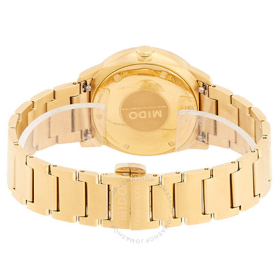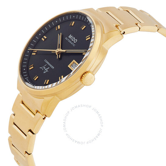 علبة وسوار من الفولاذ المقاوم للصدأ مطليان بالذهب الأصفر بتقنية PVD. إطار ثابت من الفولاذ المقاوم للصدأ مطلي بالذهب الأصفر بتقنية PVD. ميناء أسود بعقارب ذهبية اللون وعلامات ساعات. علامات دقائق حول الحافة الخارجية. نوع الميناء: تناظري. عرض التاريخ عند موضع الساعة 3. حركة أوتوماتيكية مع احتياطي طاقة لمدة 72 ساعة. زجاج من الياقوت المقاوم للخدش. تاج قابل للسحب/الدفع. شكل العلبة دائري، مقاسها: 35 مم، سمكها: 9.2 مم. عرض السوار: 19 مم. مشبك قابل للطي. مقاومة للماء حتى عمق 50 مترًا / 165 قدمًا. الوظائف: التاريخ، الساعة، الدقائق، الثواني. سلسلة كوماندر ليدي. تصميم كاجوال. علامة الساعة: صناعة سويسرية. تنوعات المنتج: M0212073305100. ساعة ميدو كوماندر ليدي أوتوماتيكية بمينا سوداء M021.207.33.051.00.