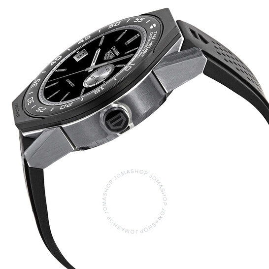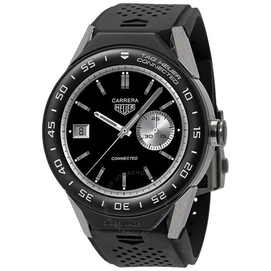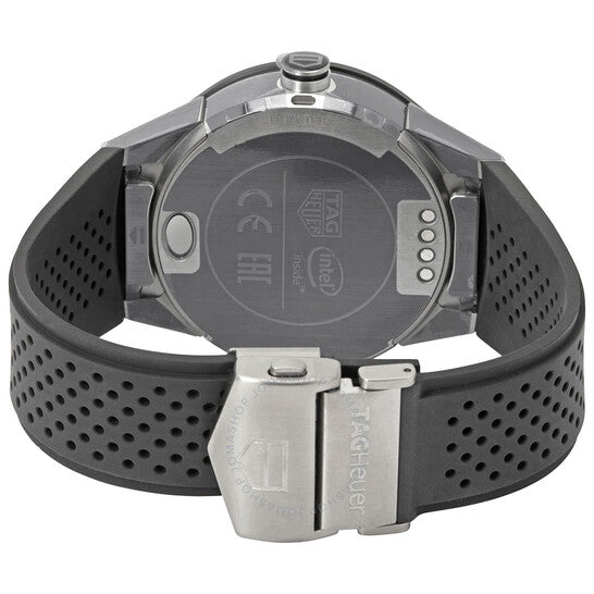علبة من التيتانيوم الأسود المصقول بدقة، مع سوار مطاطي أسود. إطار من السيراميك الأسود المصقول بمقياس سرعة ثابت. ميناء رقمي. مقياس سرعة. نوع الميناء: رقمي. حركة أوتوماتيكية من تاغ هوير كاليبر 16، مبنية على فالجو 7750، تحتوي على 25 جوهرة، تنبض بمعدل 28800 ذبذبة في الساعة، وتحتفظ باحتياطي طاقة لمدة 42 ساعة تقريبًا. زجاج من الياقوت المقاوم للخدش. غطاء خلفي شفاف. شكل دائري، مقاس العلبة: 45 مم، سمكها: 13.75 مم. مشبك قابل للطي. مقاومة للماء حتى عمق 50 مترًا / 165 قدمًا. الوظائف: كرونوغراف، تاريخ، ساعة، دقيقة، ثانية. معلومات إضافية: دقة الشاشة: 400 × 400. ذاكرة رئيسية 512 ميجابايت مع ذاكرة تخزين 4 جيجابايت. بلوتوث 4.1 - واي فاي 2.4 جيجاهرتز 802.11 b/g/n. شاشة لمس متعددة AMOLED. سلسلة Connected. ساعة رياضية. علامة الساعة: صناعة سويسرية. ساعة تاغ هوير كونكتد كرونوغراف ذكية رقمية للرجال SBF8A8001.11EB0128.