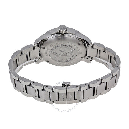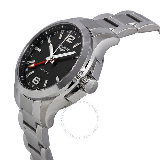 علبة من الفولاذ المقاوم للصدأ مع سوار من الفولاذ المقاوم للصدأ. إطار ثابت من الفولاذ المقاوم للصدأ. ميناء أسود بعقارب فضية مضيئة وعلامات ساعات لاصقة. أرقام عربية تُشير إلى موضعي الساعة 6 و12. علامات 24 ساعة. علامات دقائق حول الحافة الخارجية. نوع الميناء: تناظري. عقارب وعلامات مضيئة. عرض التاريخ عند موضع الساعة 3. حركة أوتوماتيكية مع احتياطي طاقة لمدة 48 ساعة. زجاج ياقوت مقاوم للخدش. تاج قابل للسحب/الدفع. غطاء خلفي صلب. حجم العلبة: 41 مم. سُمك العلبة: 14 مم. شكل العلبة دائري. عرض السوار: 20 مم. مشبك قابل للطي بزر ضغط. مقاومة للماء حتى عمق 50 مترًا / 165 قدمًا. الوظائف: التاريخ، الساعة، الدقائق، الثواني. طراز ساعة رسمية. ملصق الساعة: صناعة سويسرية. إصدارات المنتج: L3 687 4 56 6، L3-687-4-56-6، L3/687/4/56/6، L36874566. ساعة لونجين كونكويست أوتوماتيكية للرجال بمينا أسود من الفولاذ المقاوم للصدأ L3.687.4.56.6.
