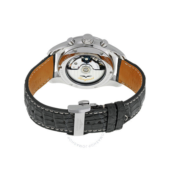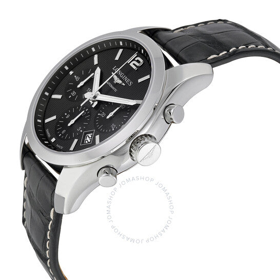 علبة من الفولاذ المقاوم للصدأ مع سوار جلدي أسود. إطار ثابت من الفولاذ المقاوم للصدأ. ميناء أسود بعقارب ومؤشرات ساعات فضية اللون. يظهر رقم عربي عند موضع الساعة ١٢. علامات دقائق حول الحافة الخارجية. نوع الميناء: تناظري. عقارب ومؤشرات مضيئة. عرض التاريخ بين موضعي الساعة ٤ و٥. كرونوغراف - ثلاثة موانئ فرعية تعرض: ٦٠ ثانية، ٣٠ دقيقة، و١٢ ساعة. حركة أوتوماتيكية مع احتياطي طاقة ٥٤ ساعة. كريستال ياقوت مقاوم للخدش. تاج لولبي. غطاء خلفي شفاف. قطر العلبة: ٤١ مم. شكل دائري. مشبك قابل للطي. مقاومة للماء حتى عمق ٥٠ مترًا / ١٦٥ قدمًا. الوظائف: كرونوغراف، تاريخ، ساعة، دقيقة، ثانية. طراز ساعة رسمية. علامة الساعة: صناعة سويسرية. ساعة لونجين كونكويست أوتوماتيكية كرونوغراف بمينا سوداء وجلد أسود L27864563.