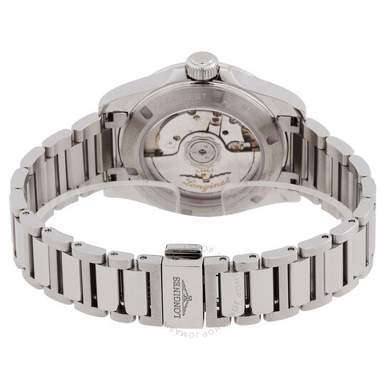علبة وسوار من الفولاذ المقاوم للصدأ فضي اللون. إطار ثابت من الفولاذ المقاوم للصدأ فضي اللون. ميناء أخضر بعقارب فضية اللون وعلامات ساعات من الألماس. علامات دقائق حول الحافة الخارجية. نوع الميناء: تناظري. عرض التاريخ عند موضع الساعة السادسة. حركة لونجين أوتوماتيكية من طراز L888، مبنية على ETA A31.L11، تحتوي على 21 جوهرة، تنبض بمعدل 25200 ذبذبة في الساعة، ولديها احتياطي طاقة لمدة 64 ساعة تقريبًا. زجاج من الياقوت المقاوم للخدش. تاج لولبي. غطاء خلفي شفاف. هيكل دائري الشكل، مقاسه 34 مم. مشبك تانغ. مقاومة للماء حتى عمق 100 متر / 330 قدمًا. الوظائف: التاريخ، الساعة، الدقيقة، الثانية. معلومات إضافية: العلبة الأصلية، بطاقة ضمان دولية، دليل الاستخدام (ملحقات كاملة). سلسلة كونكويست. طراز ساعة فاخرة. ملصق الساعة: صناعة سويسرية. ساعة لونجين كونكويست أوتوماتيكية نسائية مرصعة بالألماس بمينا أخضر، L3.430.4.07.6.