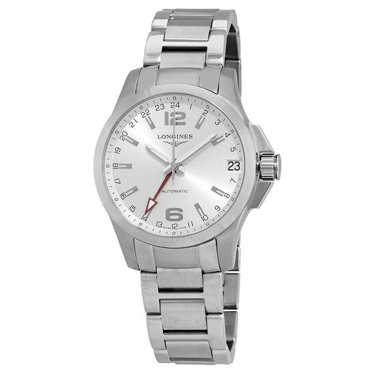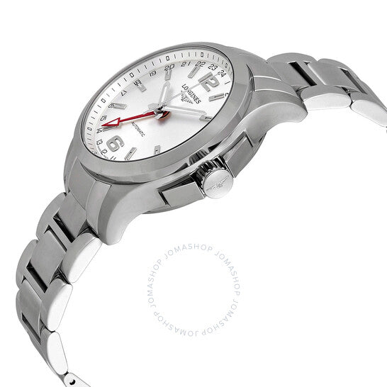 علبة من الفولاذ المقاوم للصدأ مع سوار من الفولاذ المقاوم للصدأ. إطار ثابت من الفولاذ المقاوم للصدأ. ميناء فضي اللون مع عقارب ومؤشرات ساعات فضية اللون. أرقام عربية تُشير إلى موضعي الساعة 6 و12. مؤشرات 24 ساعة. مؤشرات دقائق حول الحافة الخارجية. نوع الميناء: تناظري. عقارب ومؤشرات مضيئة. عرض التاريخ عند موضع الساعة 3. حركة أوتوماتيكية من عيار لونجين L704 مع احتياطي طاقة لمدة 48 ساعة. زجاج ياقوت مقاوم للخدش. تاج قابل للسحب/الدفع. غطاء خلفي قابل للفك. حجم العلبة: 41 مم. سمكها: 10.2 مم. شكلها دائري. عرض السوار: 19 مم. طول السوار: 8 بوصات. مشبك قابل للطي بزر ضغط. مقاومة للماء حتى عمق 50 مترًا / 165 قدمًا. الوظائف: التاريخ، الساعة، الدقيقة، الثانية، 24 ساعة. تصميم ساعة فاخرة. ملصق الساعة: صناعة سويسرية. إصدارات المنتج: L3 687 4 76 6، L3-687-4-76-6، L3/687/4/76/6، L36874766. ساعة لونجين كونكويست أوتوماتيكية للرجال، بمينا فضي، وستانلس ستيل، L3.687.4.76.6.
