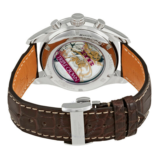 علبة من الفولاذ المقاوم للصدأ مع حزام جلدي بني. إطار ثابت من الفولاذ المقاوم للصدأ. ميناء بني مع عقارب ومؤشرات ساعات فضية مضيئة. مقياس للتاريخ. مؤشرات دقائق حول الحافة الخارجية. نوع الميناء: تناظري. عقارب ومؤشرات مضيئة. عرض يوم الأسبوع والشهر فوق الميناء المركزي. كرونوغراف - ثلاثة موانئ فرعية تعرض: 60 ثانية / 24 ساعة، 30 دقيقة و12 ساعة / أطوار القمر. عيار لونجين: 678 حركة أوتوماتيكية مع احتياطي طاقة لمدة 46 ساعة. زجاج ياقوت مقاوم للخدش. تاج قابل للسحب/الدفع. غطاء خلفي صلب. حجم العلبة: 42 مم. سمك العلبة: 14.5 مم. شكل دائري. عرض السوار: 21 مم. مشبك قابل للطي. مقاومة للماء حتى عمق 50 مترًا / 165 قدمًا. الوظائف: التاريخ، اليوم، الشهر، كرونوغراف، أطوار القمر، الساعة، الدقيقة، الثانية. طراز ساعة رسمية. ملصق الساعة: صناعة سويسرية. ساعة لونجين كونكويست كرونوغراف أوتوماتيكية للرجال L27984623.