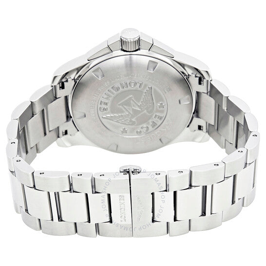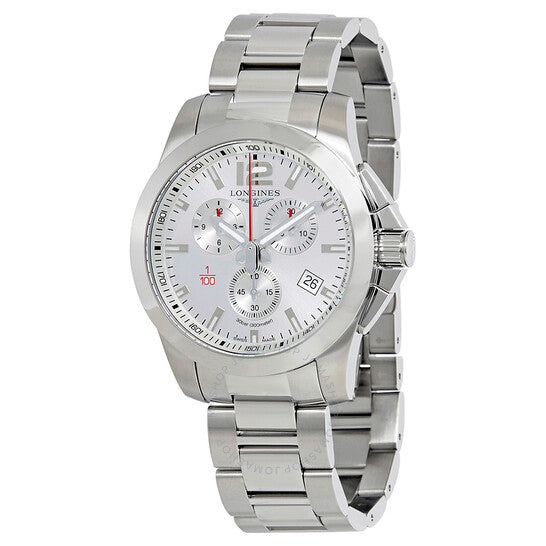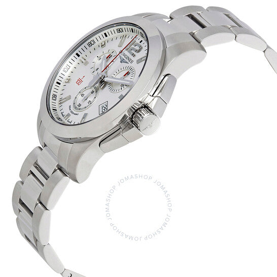 علبة من الفولاذ المقاوم للصدأ مع سوار من الفولاذ المقاوم للصدأ. إطار ثابت من الفولاذ المقاوم للصدأ. ميناء فضي مع عقارب مضيئة فضية اللون وعلامات ساعات. يظهر رقم عربي عند موضع الساعة ١٢. علامات الدقائق. علامات ١/١٠٠ ثانية حول الحافة الخارجية. نوع الميناء: تناظري. عقارب وعلامات مضيئة. عرض التاريخ عند موضع الساعة ٤. كرونوغراف - ثلاثة أقراص فرعية تعرض: ٦٠ ثانية، ٣٠ دقيقة، و١٢ ساعة. حركة كوارتز لونجين عيار ٤٤٠. كريستال ياقوت مقاوم للخدش. تاج لولبي. غطاء خلفي صلب. حجم العلبة: ٤٤ مم. سمك العلبة: ١١.٥ مم. شكل العلبة دائري. عرض السوار: ٢٢ مم. مشبك قابل للطي. مقاومة للماء حتى عمق ٣٠٠ متر / ١٠٠٠ قدم. الوظائف: كرونوغراف، تاريخ، ساعة، دقيقة، ثانية. تصميم ساعة فاخرة. ملصق الساعة: صناعة سويسرية. ساعة لونجين كونكويست كرونوغراف للرجال بمينا فضية L38004766