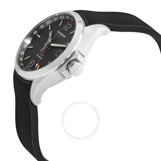 علبة من الفولاذ المقاوم للصدأ فضية اللون مع سوار مطاطي أسود. إطار ثابت. ميناء أسود بعقارب فضية اللون وأرقام عربية للساعات. نوع الميناء: تناظري. عقارب ومؤشرات مضيئة. عرض التاريخ عند موضع الساعة 3. آلية حركة كوارتز. زجاج ياقوتي مقاوم للخدش. تاج قابل للسحب/الدفع. غطاء خلفي صلب. شكل دائري، مقاس العلبة: 43 مم. مشبك قابل للطي بزر ضغط. مقاومة للماء حتى عمق 50 مترًا / 164 قدمًا. الوظائف: التاريخ، الساعة، الدقيقة، الثانية. سلسلة كونكويست. طراز ساعة رسمية. علامة الساعة: صناعة سويسرية. ساعة لونجين كونكويست كوارتز للرجال بمينا أسود، L3.728.4.56.9.