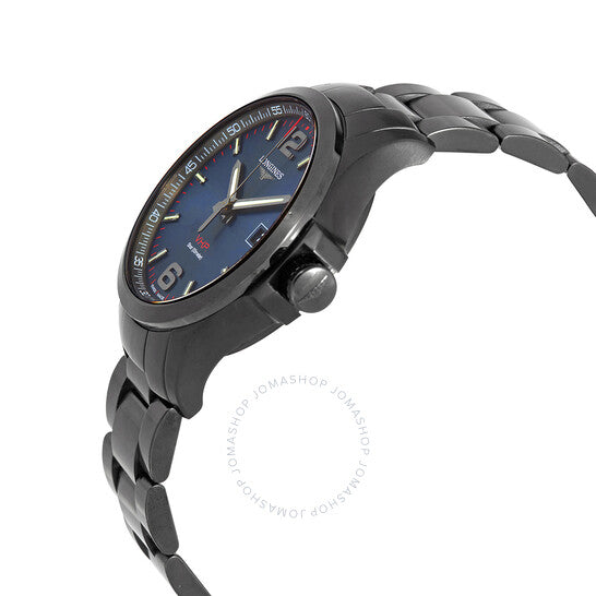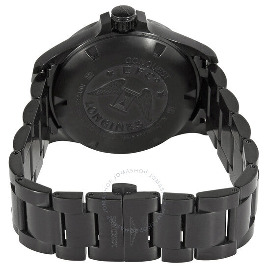 علبة وسوار من الفولاذ المقاوم للصدأ مطليان باللون الأسود بتقنية PVD. إطار ثابت من الفولاذ المقاوم للصدأ مطلي باللون الأسود بتقنية PVD. ميناء أزرق مع عقارب رمادية مضيئة ومؤشرات ساعات. أرقام عربية تُشير إلى موضعي الساعة 6 و12. علامات دقائق عربية (بفاصل 5 دقائق). علامات دقائق حول الحافة الخارجية. نوع الميناء: تناظري. عقارب ومؤشرات مضيئة. عرض التاريخ عند موضع الساعة 3. حركة كوارتز من لونجين كاليبر L288. زجاج ياقوت مقاوم للخدش. غطاء خلفي صلب. شكل دائري، مقاس العلبة: 43 مم. عرض السوار: 22 مم. مشبك قابل للطي مع مفتاح أمان. مقاومة للماء حتى عمق 50 مترًا / 165 قدمًا. الوظائف: التاريخ، الساعة، الدقيقة، الثانية. سلسلة Conquest VHP. تصميم ساعة كاجوال. علامة الساعة: صناعة سويسرية. ساعة لونجين Conquest VHP Perpetual كوارتز زرقاء للرجال، L3.726.2.96.6.