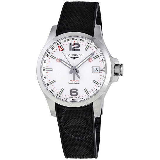 علبة فضية اللون من الفولاذ المقاوم للصدأ مع سوار مطاطي أسود. إطار ثابت فضي اللون من الفولاذ المقاوم للصدأ. ميناء فضي بعقارب سوداء وأرقام عربية للساعات. 24 ساعة. نوع الميناء: تناظري. عقارب وعلامات مضيئة. عرض التاريخ عند موضع الساعة 3. حركة كوارتز لونجين كاليبر L287. زجاج ياقوتي مقاوم للخدش. تاج قابل للسحب/الدفع. غطاء خلفي صلب. شكل دائري. حجم العلبة: 41 مم. عرض السوار: 20 مم. مشبك قابل للطي. مقاومة للماء حتى عمق 50 مترًا / 165 قدمًا. الوظائف: توقيت غرينتش، المنطقة الزمنية الثانية، الساعات، الدقائق، الثواني، التاريخ. تصميم كاجوال. علامة الساعة: صناعة سويسرية. ساعة لونجين كونكويست VHP كوارتز للرجال بمينا فضي L37184769.