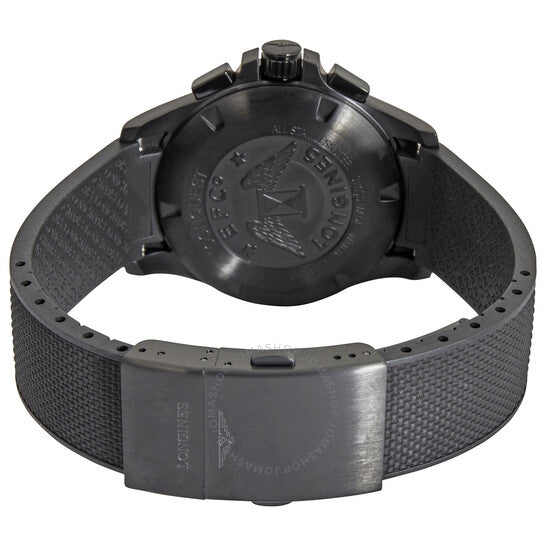 علبة من الفولاذ المقاوم للصدأ مطلية باللون الأسود بتقنية PVD مع سوار مطاطي أسود. إطار ثابت مطلي باللون الأسود بتقنية PVD. ميناء من ألياف الكربون مع عقارب ومؤشرات ساعات سوداء مضيئة. تظهر أرقام عربية عند موضع الساعة ١٢. علامات دقائق حول الحافة الخارجية. نوع الميناء: تناظري. عقارب ومؤشرات مضيئة. عرض التاريخ بين موضعي الساعة ٤ و٥. كرونوغراف - ثلاثة موانئ فرعية تعرض: ٦٠ ثانية، ٣٠ دقيقة، و١٢ ساعة. حركة كوارتز لونجين عيار L289.2. كريستال ياقوت مقاوم للخدش. تاج قابل للسحب/الدفع. غطاء خلفي صلب. شكل دائري. حجم العلبة: ٤٢ مم. عرض السوار: ٢١ مم. مشبك قابل للطي مع مفتاح أمان. مقاومة للماء حتى عمق ٥٠ مترًا / ١٦٥ قدمًا. الوظائف: تقويم دائم، تاريخ، ساعة، دقيقة، ثانية، مؤشر عمر البطارية، مقاومة للصدمات، مقاومة للمغناطيس. سلسلة Conquest VHP. طراز ساعة رياضية. ملصق الساعة: صناعة سويسرية. ساعة لونجين كونكويست VHP بمينا من ألياف الكربون للرجال L37172669.