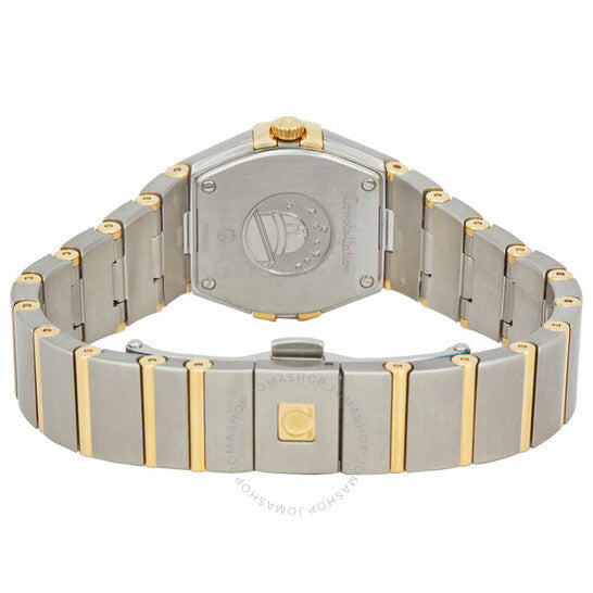 علبة من الفولاذ المقاوم للصدأ والذهب مع سوار فولاذي بقضبان من الذهب الأصفر. إطار ثابت من الفولاذ المقاوم للصدأ مرصع بـ 28 ماسة. ميناء من عرق اللؤلؤ مع عقارب ذهبية مضيئة وعلامات ساعات من الألماس. حركة كوارتز. زجاج من الياقوت المقاوم للخدش والانعكاس. غطاء خلفي صلب. قطر العلبة: 24 مم. مشبك قابل للطي بزر ضغط. مقاومة للماء حتى عمق 30 مترًا/100 قدم. ساعة أوميغا كونستليشن 09 النسائية 12325246055004.