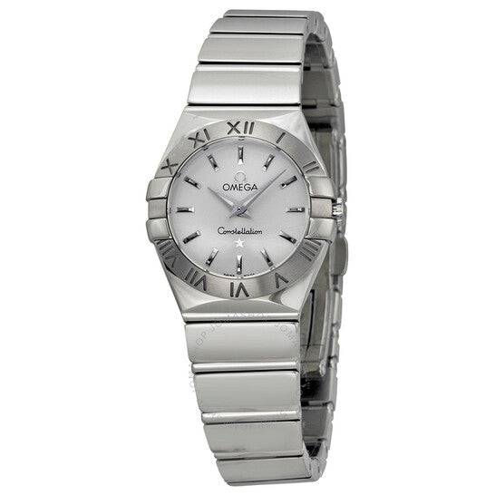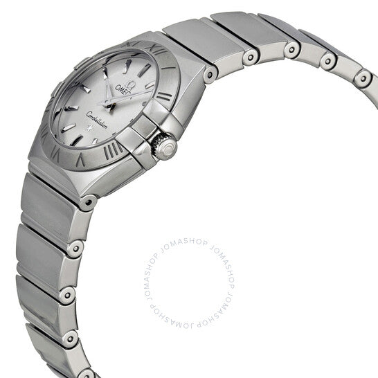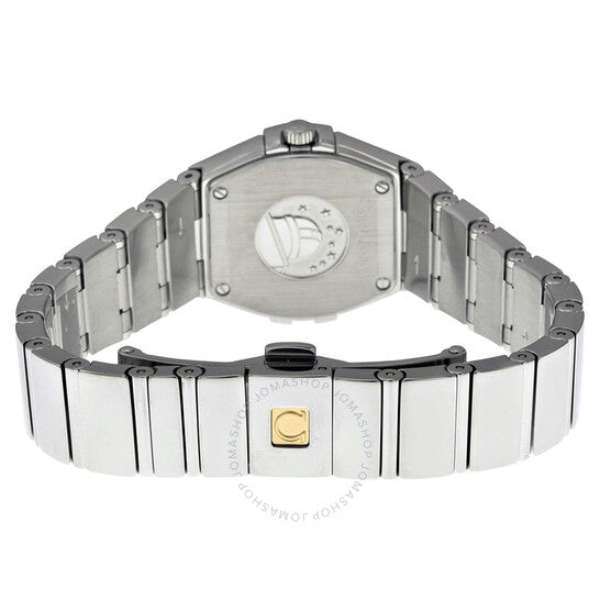 علبة من الفولاذ المقاوم للصدأ مع سوار مصقول من الفولاذ المقاوم للصدأ. إطار ثابت من الفولاذ المقاوم للصدأ. ميناء فضي اللون مع عقارب ومؤشرات ساعات فضية اللون. نوع الميناء: تناظري. حركة كوارتز. زجاج ياقوت مقاوم للخدش ومضاد للانعكاس. غطاء خلفي صلب. قطر العلبة: ٢٤ مم. سُمكها: ٨.٢ مم. شكلها دائري. عرض السوار: ١٥ مم. مشبك قابل للطي بزر ضغط. مقاومة للماء حتى عمق ٣٠ مترًا/١٠٠ قدم. الوظائف: الساعات، الدقائق. طراز ساعة رسمية. علامة الساعة: صناعة سويسرية. ساعة أوميغا كونستليشن ٠٩ النسائية بمينا فضي وستانلس ستيل ١٢٣.١٠.٢٤.٦٠.٠٢.٠٠٢.