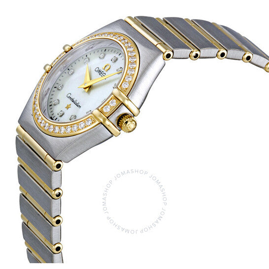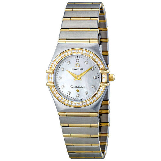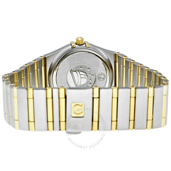 علبة من الذهب الأصفر عيار 18 قيراطًا والفولاذ المقاوم للصدأ، بلونين (فضي وذهبي)، مع سوار من الذهب الأصفر عيار 18 قيراطًا والفولاذ المقاوم للصدأ. إطار ثابت من الذهب الأصفر عيار 18 قيراطًا مرصع بالألماس. ميناء من عرق اللؤلؤ الأبيض مع عقارب ذهبية وعلامات ساعات من الألماس. علامات دقائق حول الحافة الخارجية. نوع الميناء: تناظري. عقارب مضيئة. حركة كوارتز أوميغا كاليبر 1456. زجاج من الياقوت المقاوم للخدش. تاج ذهبي. غطاء خلفي صلب. شكل العلبة دائري، مقاسها: 25.5 مم، سمكها: 7.5 مم. مشبك قابل للطي بزر ضغط. مقاومة للماء حتى عمق 30 مترًا / 100 قدم. الوظائف: الساعة، الدقائق. سلسلة كونستليشن 95. تصميم ساعة فاخر. علامة الساعة: صناعة سويسرية. اختلافات المنتج: 1277.75، 1277.75.00، 1277-75، 1277-75-00، 1277/75، 127775، 1277. ساعة أوميغا كونستليشن 95 للسيدات 1277.75.