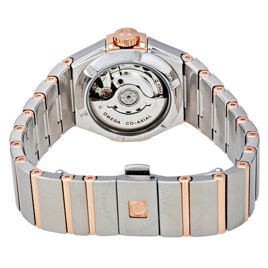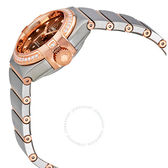 علبة من الفولاذ المقاوم للصدأ مع سوار من الفولاذ المقاوم للصدأ بقضبان من الذهب الوردي عيار 18 قيراطًا. إطار ثابت من الذهب الوردي عيار 18 قيراطًا مرصع بالألماس. ميناء بني من البرالين مع عقارب مضيئة على شكل دوفين بلون الذهب الوردي وعلامات ساعات من الألماس. نوع الميناء: تناظري. عقارب مضيئة. عرض التاريخ عند موضع الساعة السادسة. حركة أوتوماتيكية من أوميغا كاليبر 8520، مستوحاة من أوميغا 8500، تحتوي على 28 جوهرة، تنبض بمعدل 25200 ذبذبة في الساعة، ولديها احتياطي طاقة يصل إلى حوالي 50 ساعة. زجاج من الياقوت المقاوم للخدش. تاج لولبي. غطاء خلفي شفاف. شكل دائري. حجم العلبة: 27 مم. سمك العلبة: 9 مم. عرض السوار: 18 مم. مشبك قابل للطي. مقاومة للماء حتى عمق 100 متر / 330 قدمًا. الوظائف: التاريخ، الساعة، الدقيقة، الثانية، الكرونومتر. سلسلة كونستليشن. تصميم ساعة فاخرة. علامة الساعة: صناعة سويسرية. ساعة أوميجا كونستليشن أوتوماتيكية بمينا من البرالين البني للسيدات 123.25.27.20.63.001.