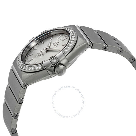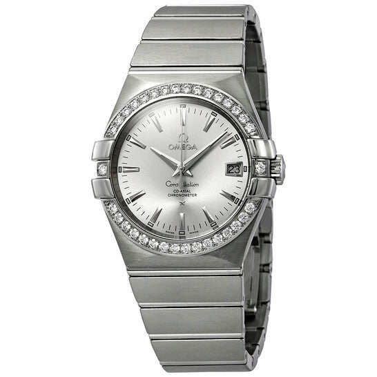علبة من الفولاذ المقاوم للصدأ مع سوار من الفولاذ المقاوم للصدأ. إطار ثابت من الفولاذ المقاوم للصدأ مرصع بـ 34 ماسة. ميناء فضي مع عقارب ومؤشرات ساعات فضية مضيئة على شكل دوفين. علامات دقائق حول الحافة الخارجية. نوع الميناء: تناظري. عقارب ومؤشرات مضيئة. عرض التاريخ عند موضع الساعة 3. حركة أوتوماتيكية أوميغا كاليبر 2500، مبنية على ETA 2892-A2، تحتوي على 27 جوهرة، تنبض بمعدل 25200 ذبذبة في الساعة، ولديها احتياطي طاقة لمدة 48 ساعة تقريبًا. كريستال ياقوت مقاوم للخدش. تاج قابل للسحب/الدفع. غطاء خلفي شفاف. شكل دائري. حجم العلبة: 35 مم. سمك العلبة: 10 مم. عرض السوار: 23 مم. مشبك قابل للطي بزر ضغط. مقاومة للماء حتى عمق 100 متر / 330 قدمًا. الوظائف: التاريخ، الساعة، الدقائق، الثواني، ميزان محوري، كرونومتر. طراز ساعة رسمية. علامة الساعة: صناعة سويسرية. ساعة أوميغا كونستليشن أوتوماتيكية كرونومتر مرصعة بالألماس للسيدات 123.15.35.20.02.001.