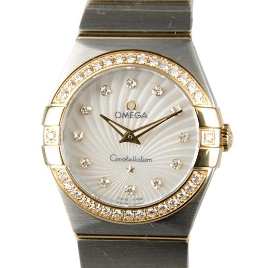 علبة من الفولاذ المقاوم للصدأ بلون فضي مع سوار من الفولاذ المقاوم للصدأ بلونين (فضي وذهبي) مع ذهب أصفر عيار 18 قيراطًا. إطار ثابت من الذهب الوردي عيار 18 قيراطًا مرصع بالألماس. ميناء أبيض مع عقارب ذهبية اللون على شكل دوفين وعلامات ساعات من الماس. نوع الميناء: تناظري. عقارب مضيئة. عرض التاريخ عند موضع الساعة 3. حركة أوميجا كاليبر 8520 أوتوماتيكية، مبنية على أوميجا 8500، تحتوي على 28 جوهرة، تنبض بمعدل 25200 ذبذبة في الساعة، ولديها احتياطي طاقة يبلغ حوالي 50 ساعة. كريستال ياقوت مقاوم للخدش. تاج سحب / دفع. غطاء خلفي شفاف. شكل دائري، حجم العلبة: 27 مم، سمك العلبة: 9 مم. قابلة للطي مع مشبك بزر ضغط للتحرير. مقاومة للماء حتى عمق 100 متر / 330 قدمًا. الوظائف: التاريخ، الساعة، الدقيقة، الثانية، الكرونومتر. طراز ساعة فاخرة. ملصق الساعة: صنع سويسري. اختلافات المنتج: 123 25 27 60 55 004، 123-25-27-60-55-004، 123/25/27/60/55/004، 12325276055004. ساعة أوميغا كونستليشن أوتوماتيكية كرونومتر مرصعة بالألماس للسيدات 123.25.27.60.55.004.