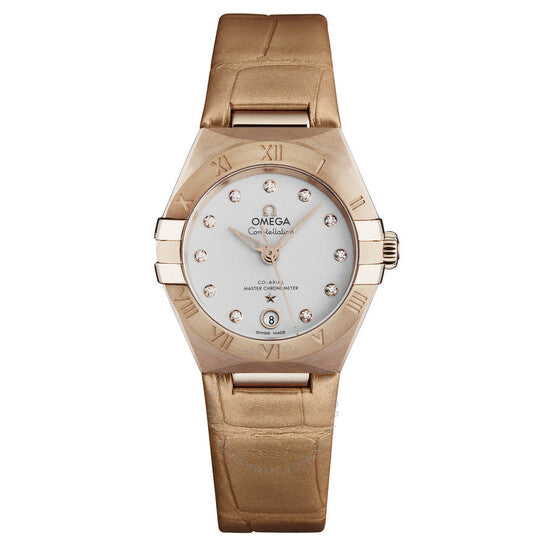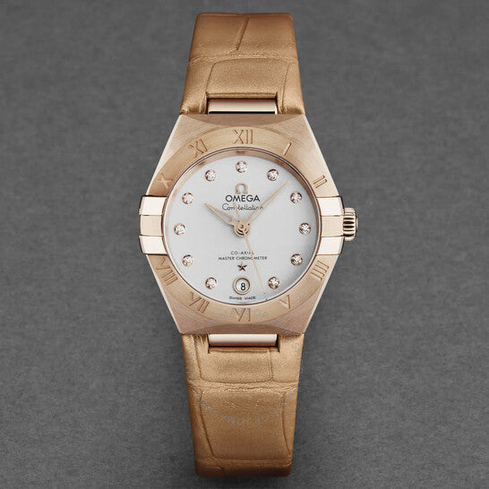 علبة من الذهب الوردي عيار ١٨ قيراطًا مع سوار جلدي. إطار ثابت من الذهب الوردي عيار ١٨ قيراطًا. ميناء فضي مع عقارب من الذهب الوردي عيار ١٨ قيراطًا وعلامات ساعات بأرقام رومانية. نوع الميناء: تناظري. عرض التاريخ عند موضع الساعة السادسة. حركة أوميغا أوتوماتيكية من عيار ٨٧٠١ مع احتياطي طاقة يصل إلى ٥٠ ساعة. زجاج من الياقوت المقاوم للخدش. تاج قابل للسحب/الدفع. غطاء خلفي شفاف. شكل العلبة دائري، مقاسها ٢٩ مم. عرض السوار: ١٧.٦ مم. مقاومة للماء حتى عمق ٥٠ مترًا / ١٦٥ قدمًا. الوظائف: التاريخ، الساعات، الدقائق، الثواني، ميزان محوري، كرونومتر. سلسلة كونستليشن. تصميم ساعة فاخرة. علامة الساعة: صناعة سويسرية. ساعة أوميغا كونستليشن أوتوماتيكية كرونومتر نسائية بمينا فضي ١٣١.٥٣.٢٩.٢٠.٥٢.٠٠٢.