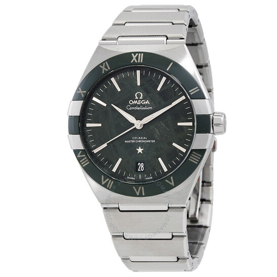 علبة وسوار من الفولاذ المقاوم للصدأ فضي اللون. إطار أخضر ثابت. ميناء أخضر بعقارب فضية اللون وعلامات ساعات رومانية. علامات دقائق حول الحافة الخارجية. نوع الميناء: تناظري. عقارب وعلامات مضيئة. عرض التاريخ عند موضع الساعة السادسة. حركة أوميغا كاليبر 8900 أوتوماتيكية، مبنية على أوميغا 8500، تحتوي على 39 جوهرة، تنبض بمعدل 25200 ذبذبة في الساعة، ولديها احتياطي طاقة يدوم حوالي 60 ساعة. زجاج ياقوت مقاوم للخدش. غطاء خلفي شفاف. شكل العلبة دائري، مقاسها: 41 مم، سمكها: 13.5 مم. مشبك قابل للطي بزر ضغط. مقاومة للماء حتى عمق 50 مترًا / 165 قدمًا. الوظائف: التاريخ، الساعة، الدقائق، الثواني. سلسلة كونستليشن. طراز ساعة رسمية. علامة الساعة: صناعة سويسرية. ساعة أوميجا كونستليشن أوتوماتيكية للرجال بمينا أخضر 131.30.41.21.99.002.
