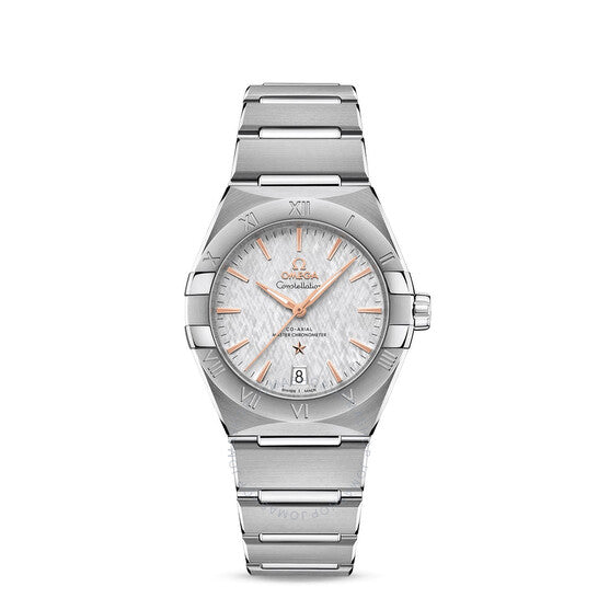علبة من الفولاذ المقاوم للصدأ مع سوار من الفولاذ المقاوم للصدأ. إطار ثابت من الفولاذ المقاوم للصدأ. ميناء رمادي مع عقارب مضيئة بلون الذهب الوردي وعلامات ساعات مؤشرة. علامات دقائق حول الحافة الخارجية. نوع الميناء: تناظري. عقارب مضيئة. عرض التاريخ عند موضع الساعة السادسة. حركة أوميغا أوتوماتيكية من عيار 8800، تحتوي على 35 جوهرة، تنبض بمعدل 25200 ذبذبة في الساعة، ولديها احتياطي طاقة لمدة 55 ساعة تقريبًا. زجاج من الياقوت المقاوم للخدش. تاج قابل للسحب/الدفع. غطاء خلفي شفاف. شكل دائري. حجم العلبة: 36 مم. عرض السوار: 22.2 مم. مشبك قابل للطي بزر ضغط. مقاومة للماء حتى عمق 50 مترًا / 165 قدمًا. الوظائف: التاريخ، الساعة، الدقيقة، الثانية. سلسلة كونستليشن الأوتوماتيكية. تصميم ساعة فاخرة. علامة الساعة: صناعة سويسرية. ساعة أوميغا كونستليشن أوتوماتيكية نسائية بمينا رمادي 131.10.36.20.06.001.