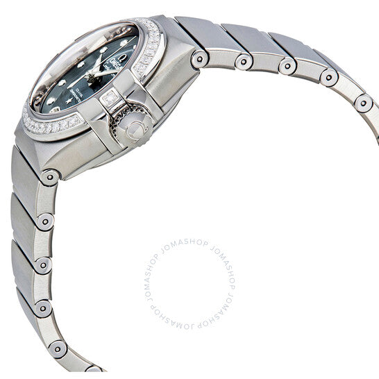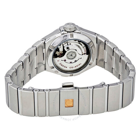 علبة من الفولاذ المقاوم للصدأ فضية اللون مع سوار فضي اللون. إطار ثابت من الفولاذ المقاوم للصدأ فضي اللون مرصع بالألماس. ميناء أزرق مطلي بالورنيش مع عقارب فضية اللون مضيئة على شكل دوفين وعلامات ساعات من الألماس. نوع الميناء: تناظري. عقارب وعلامات مضيئة. عرض التاريخ عند موضع الساعة السادسة. حركة أوميجا كاليبر 8520 أوتوماتيكية، مبنية على أوميجا 8500، تحتوي على 28 جوهرة، تنبض بمعدل 25200 ذبذبة في الساعة، ولديها احتياطي طاقة لمدة 50 ساعة تقريبًا. زجاج من الياقوت المقاوم للخدش. تاج لولبي. غطاء خلفي شفاف. شكل دائري، حجم العلبة: 27 مم، سمك العلبة: 9 مم. عرض السوار: 18 مم. مشبك قابل للطي. مقاومة للماء حتى عمق 50 مترًا / 165 قدمًا. الوظائف: التاريخ، الساعة، الدقيقة، الثانية، الكرونومتر. طراز ساعة فاخرة. علامة الساعة: سويسرية الصنع. ساعة أوميغا كونستليشن أوتوماتيكية للسيدات 123.15.27.20.53.001.