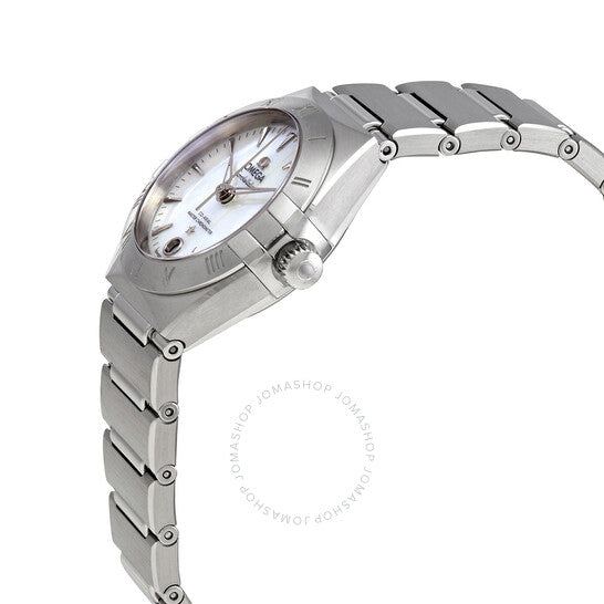 علبة من الفولاذ المقاوم للصدأ مع سوار من الفولاذ المقاوم للصدأ. إطار ثابت من الفولاذ المقاوم للصدأ. ميناء من عرق اللؤلؤ مع عقارب من الذهب الأبيض وعلامات ساعات مؤشرة. علامات دقائق حول الحافة الخارجية. نوع الميناء: تناظري. عرض التاريخ عند موضع الساعة السادسة. حركة أوميغا أوتوماتيكية عيار 8700 مع احتياطي طاقة يصل إلى 50 ساعة. زجاج من الياقوت المقاوم للخدش. تاج قابل للسحب/الدفع. غطاء خلفي شفاف. شكل دائري. حجم العلبة: 29 مم. عرض السوار: 17.6 مم. مشبك قابل للطي بزر ضغط. مقاومة للماء حتى عمق 50 مترًا / 167 قدمًا. الوظائف: التاريخ، الساعة، الدقيقة، الثانية. سلسلة كونستليشن أوتوماتيك. تصميم ساعة فاخرة. علامة الساعة: صناعة سويسرية. ساعة أوميغا كونستليشن أوتوماتيك نسائية 131.10.29.20.05.001.