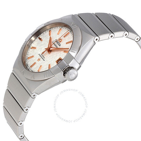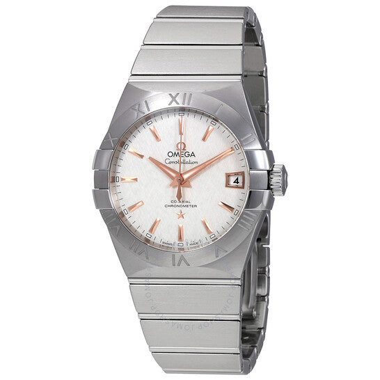 علبة من الفولاذ المقاوم للصدأ مع سوار من الفولاذ المقاوم للصدأ. إطار ثابت من الفولاذ المقاوم للصدأ. ميناء أبيض من الأوبالين مع عقارب ومؤشرات ساعات من الذهب الوردي عيار 18 قيراطًا على شكل دوفين. علامات دقائق حول الحافة الخارجية. نوع الميناء: تناظري. عقارب ومؤشرات مضيئة. عرض التاريخ عند موضع الساعة 3. حركة أوتوماتيكية من أوميغا كاليبر 8500، تحتوي على 39 جوهرة، مكونة من 202 قطعة، تنبض بمعدل 25200 ذبذبة في الساعة، ولديها احتياطي طاقة يصل إلى حوالي 60 ساعة. زجاج من الياقوت المقاوم للخدش. تاج قابل للسحب/الدفع. غطاء خلفي شفاف. شكل دائري. حجم العلبة: 38 مم. عرض السوار: 24 مم. مشبك قابل للطي بزر ضغط. مقاومة للماء حتى عمق 100 متر / 330 قدمًا. الوظائف: التاريخ، الساعات، الدقائق، الثواني، ميزان محوري، كرونومتر. سلسلة كونستليشن. تصميم ساعة فاخرة. ملصق الساعة: صناعة سويسرية. ساعة أوميجا كونستليشن الأوتوماتيكية للرجال 123.10.38.21.02.002.