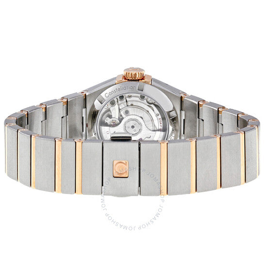 علبة من الفولاذ المقاوم للصدأ فضية اللون، وسوار من الفولاذ المقاوم للصدأ فضي اللون، وقضبان من الذهب الوردي عيار 18 قيراطًا. إطار ثابت من الذهب الوردي عيار 18 قيراطًا بأرقام رومانية. ميناء أبيض من عرق اللؤلؤ، وعقارب ذهبية اللون على شكل دوفين، وعلامات ساعات من الماس. نوع الميناء: تناظري. عقارب مضيئة. عرض التاريخ عند موضع الساعة 3. حركة أوميجا كاليبر 8520 أوتوماتيكية، مبنية على أوميجا 8500، تحتوي على 28 جوهرة، وتنبض بمعدل 25200 ذبذبة في الساعة، ولديها احتياطي طاقة لمدة 50 ساعة تقريبًا. زجاج من الياقوت المقاوم للخدش. تاج قابل للسحب/الدفع. ظهر هيكلي. شكل دائري، حجم العلبة: 27 مم، سمك العلبة: 8.6 مم. عرض السوار: 15 مم. مشبك قابل للطي بزر ضغط. مقاومة للماء حتى عمق 100 متر / 330 قدمًا. الوظائف: التاريخ، الساعة، الدقيقة، الثانية، الكرونومتر. تصميم ساعة فاخرة. علامة الساعة: صناعة سويسرية. أرقام المنتج: 123 20 27 20 55 001، 123-20-27-20-55-001، 123/20/27/20/55/001، 12320272055001. ساعة أوميغا كونستليشن كرونوميتر النسائية 123.20.27.20.55.001.