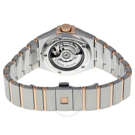 علبة من الفولاذ المقاوم للصدأ مع سوار من الفولاذ المقاوم للصدأ بقضبان من الذهب الوردي عيار 18 قيراطًا. إطار ثابت من الذهب الوردي عيار 18 قيراطًا. ميناء بني مع عقارب مضيئة من الذهب الوردي وعلامات ساعات من الذهب الوردي. نوع الميناء: تناظري. عقارب وعلامات مضيئة. عرض التاريخ عند موضع الساعة 3. حركة أوتوماتيكية ذاتية التعبئة مع احتياطي طاقة يصل إلى 50 ساعة. زجاج من الياقوت المقاوم للخدش. تاج قابل للسحب/الدفع. غطاء خلفي هيكلي. قطر العلبة: 31 مم. شكل العلبة: تونيو. عرض السوار: 20.3 مم. طول السوار: 8 بوصات. مشبك قابل للطي مع زر ضغط. مقاومة للماء حتى عمق 100 متر / 330 قدمًا. الوظائف: التاريخ، الساعات، الدقائق، الثواني، الكرونومتر. طراز ساعة فاخرة. علامة الساعة: صناعة سويسرية. اختلافات المنتج: 12320312013001. ساعة أوميغا كونستليشن أوميغا كواكسيال 31 مم للسيدات 123.20.31.20.13.001.