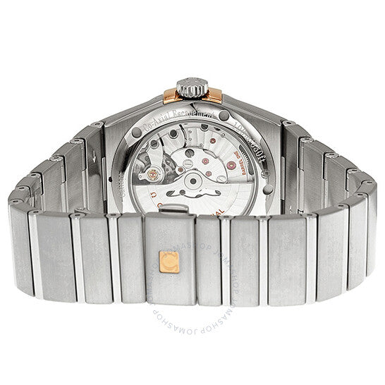 علبة من الفولاذ المقاوم للصدأ مع سوار من الفولاذ المقاوم للصدأ. إطار ثابت من الفولاذ المقاوم للصدأ بلمسات من الذهب الوردي. ميناء فضي اللون بعقارب وعلامات ساعات بلون الذهب الوردي. علامات دقائق حول الحافة الخارجية. نوع الميناء: تناظري. عقارب وعلامات مضيئة. عرض التاريخ عند موضع الساعة 3. آلية حركة أوتوماتيكية. زجاج ياقوت مقاوم للخدش. تاج قابل للسحب/الدفع. غطاء خلفي هيكلي. قطر العلبة: 38 مم. شكلها دائري. عرض السوار: 21.6 مم. طول السوار: 8 بوصات. مشبك قابل للطي بزر ضغط. مقاومة للماء حتى عمق 100 متر / 330 قدمًا. الوظائف: التاريخ، الساعة، الدقيقة، الثانية. تصميم ساعة فاخرة. علامة الساعة: صناعة سويسرية. ساعة أوميغا كونستليشن كو-أكسيال أوتوماتيكية للرجال، مصنوعة من الفولاذ والذهب الوردي، رقمها 123.20.38.21.02.004.