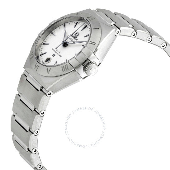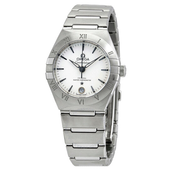 علبة من الفولاذ المقاوم للصدأ مع سوار من الفولاذ المقاوم للصدأ. إطار ثابت من الفولاذ المقاوم للصدأ. ميناء فضي بعقارب على شكل حرف ألفا وعلامات ساعات مؤشرة. علامات دقائق حول الحافة الخارجية. نوع الميناء: تناظري. عرض التاريخ عند موضع الساعة السادسة. حركة أوميغا أوتوماتيكية عيار 8700 مع احتياطي طاقة يصل إلى 50 ساعة. زجاج من الياقوت المقاوم للخدش. تاج قابل للسحب/الدفع. غطاء خلفي شفاف. شكل دائري. حجم العلبة: 29 مم. عرض السوار: 17.6 مم. مشبك قابل للطي بزر ضغط. مقاومة للماء حتى عمق 50 مترًا / 165 قدمًا. الوظائف: التاريخ، الساعة، الدقيقة، الثانية. تصميم ساعة فاخرة. علامة الساعة: صناعة سويسرية. ساعة أوميغا كونستليشن كواكسيال ماستر كرونوميتر أوتوماتيكية نسائية 131.10.29.20.02.001.