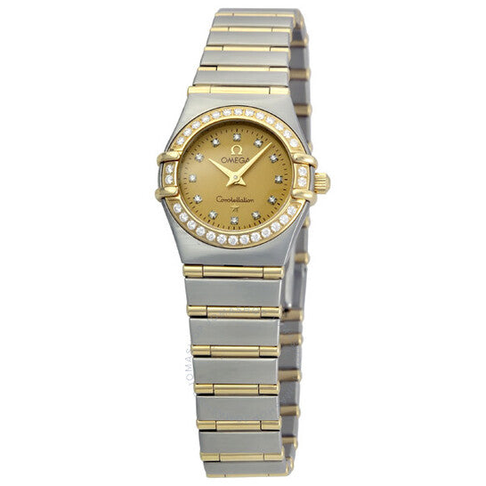 علبة من الذهب الأصفر عيار 18 قيراطًا والفولاذ المقاوم للصدأ، مع سوار ثنائي اللون (فضي وذهبي). إطار ثابت من الذهب الأصفر عيار 18 قيراطًا مرصع بالألماس. ميناء عاجي اللون مع عقارب ذهبية اللون وعلامات ساعات مرصعة بالألماس. نوع الميناء: تناظري. حركة كوارتز أوميغا كاليبر 1456. زجاج ياقوت مقاوم للخدش. تاج قابل للسحب/الدفع. شكل العلبة دائري، مقاسها: 22.5 مم، سُمكها: 7.5 مم. إبزيم قابل للطي بزر ضغط. مقاومة للماء حتى عمق 30 مترًا / 100 قدم. الوظائف: الساعات، الدقائق. تصميم فاخر. علامة الساعة: صناعة سويسرية. اختلافات المنتج: 1267.15، 1267.15.00، 1267-15، 1267-15-00، 1267/15، 126715، 1267. ساعة أوميغا كونستليشن ميني للسيدات 1267.15.