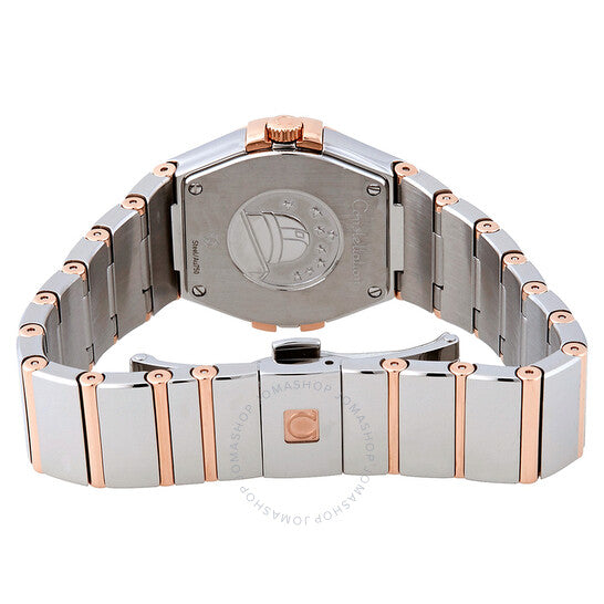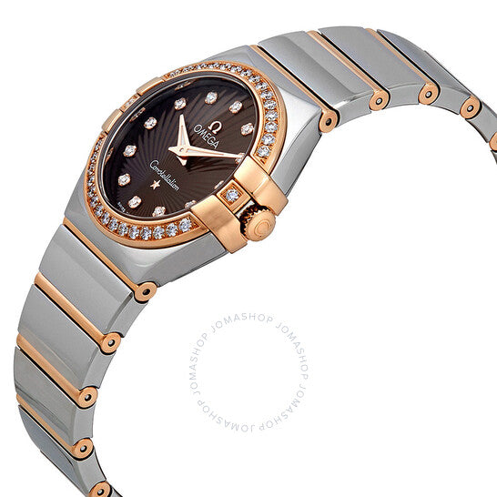 علبة من الفولاذ المقاوم للصدأ مع سوار من الفولاذ المقاوم للصدأ بقضبان من الذهب الوردي عيار 18 قيراطًا. إطار ثابت من الذهب الوردي عيار 18 قيراطًا مرصع بالألماس. ميناء بني مع عقارب مضيئة بلون الذهب الوردي وعلامات ساعات من الألماس. نوع الميناء: تناظري. عقارب مضيئة. حركة كوارتز أوميغا عيار 1376. زجاج ياقوت مقاوم للخدش. تاج قابل للسحب/الدفع. غطاء خلفي صلب. حجم العلبة: 27 مم. سمكها: 9 مم. شكلها دائري. عرض السوار: 18 مم. مشبك قابل للطي. مقاومة للماء حتى عمق 100 متر / 330 قدمًا. الوظائف: الساعات، الدقائق، الثواني. تصميم ساعة فاخرة. علامة الساعة: صناعة سويسرية. اختلافات المنتج: 123 25 27 60 63 002، 123-25-27-60-63-002، 123/25/27/60/63/002، 12325276063002. ساعة أوميغا كونستليشن للسيدات 123.25.27.60.63.002.