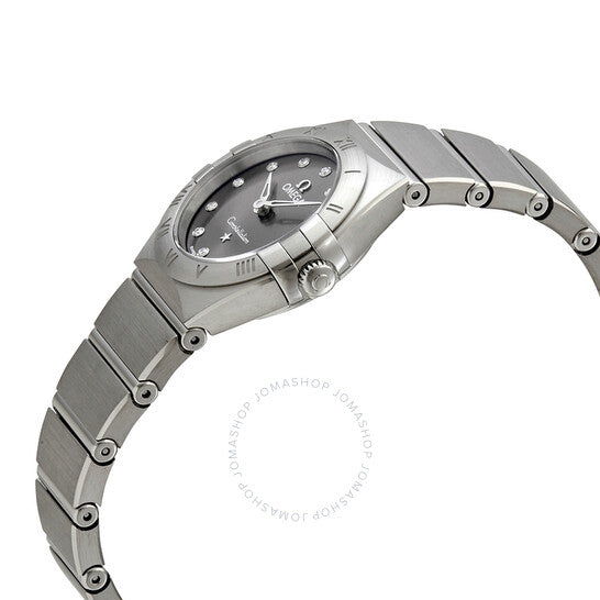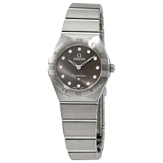 علبة من الفولاذ المقاوم للصدأ مع سوار من الفولاذ المقاوم للصدأ. إطار ثابت من الفولاذ المقاوم للصدأ. ميناء رمادي مع عقارب من الذهب الأبيض عيار 18 قيراطًا وعلامات ساعات من الألماس. نوع الميناء: تناظري. حركة كوارتز أوميغا عيار 4061. زجاج ياقوت مقاوم للخدش. تاج قابل للسحب/الدفع. غطاء خلفي صلب. شكل دائري. حجم العلبة: 25 مم. عرض السوار: 15.9 مم. مشبك قابل للطي بزر ضغط. مقاومة للماء حتى عمق 30 مترًا / 100 قدم. الوظائف: الساعات، الدقائق. طراز ساعة رسمية. علامة الساعة: صناعة سويسرية. ساعة أوميغا كونستليشن مانهاتن كوارتز نسائية بمينا رمادي مرصعة بالألماس، رقم الموديل 131.10.25.60.56.001.